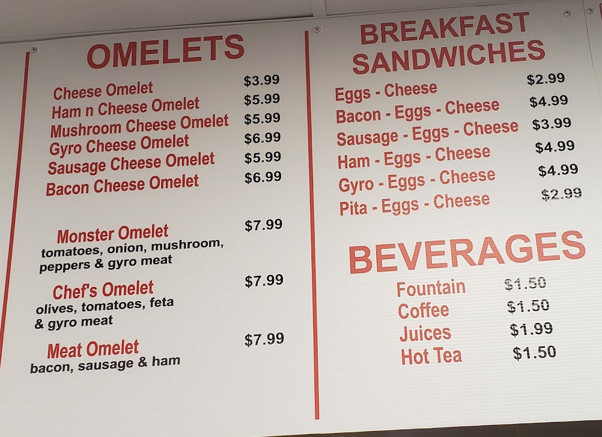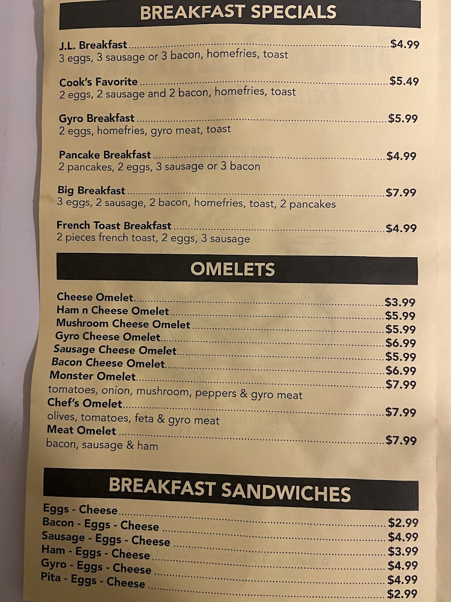 The menu boasts enticing options from Big Breakfasts to delicious Philly Gyros. Guests rave about the Cook's Favorite and the crispy French fries served alongside perfectly sized gyros. The grilled ham and cheese and hamburgers are also highlights, impressing visitors with their freshness and flavor.